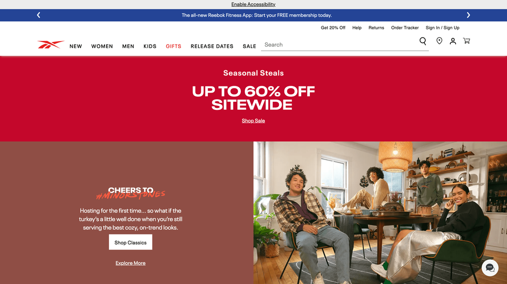 reebok.comThe Reebok website features a sleek and modern design that emphasizes the brand's dedication to fitness, performance, and style. Users can easily explore a wide array of products, from running shoes to training apparel, all while benefiting from detailed product information and inspirational content. With a user-friendly interface and engaging visuals, the site effectively captures Reebok's commitment to empowering individuals to reach their fitness goals.